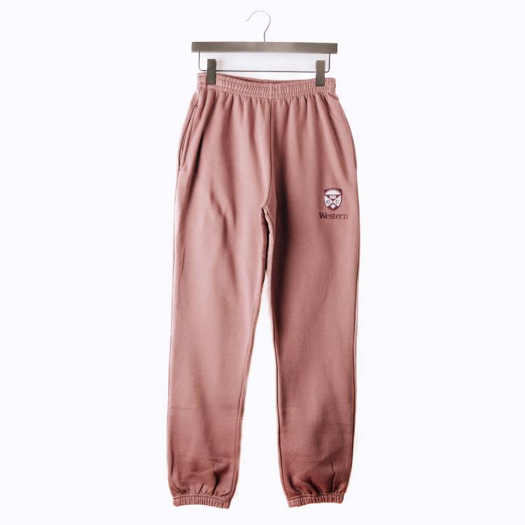 Sweatpants with pockets and embroidered stacked "Western Crest" on left leg.