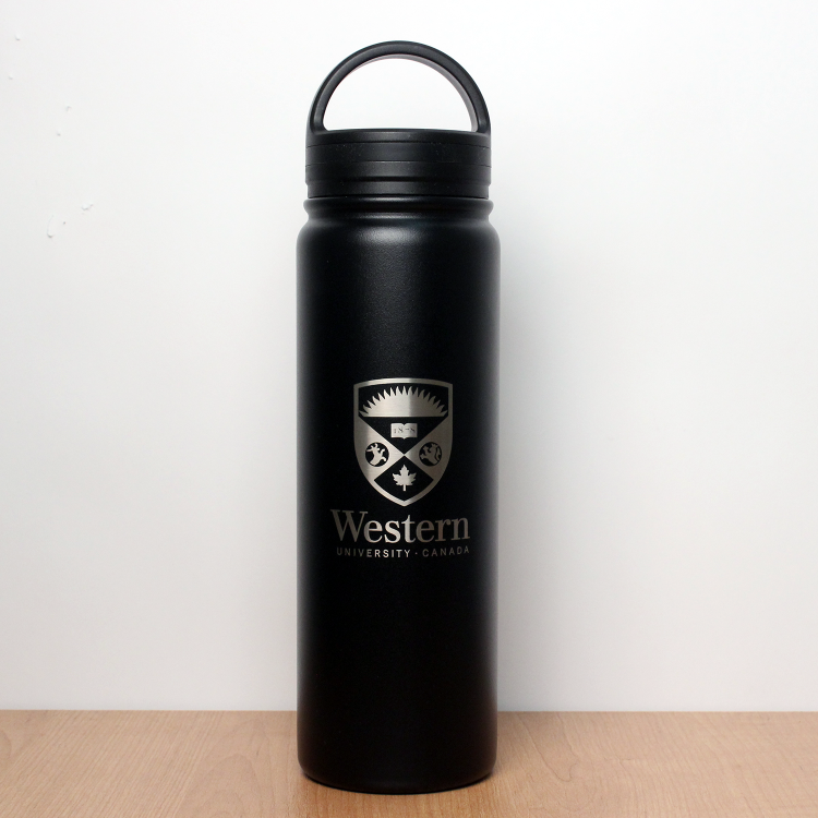 24Oz Black Vacuum Bottle Laser Western University Canada