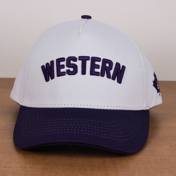 White/Purple Structured 5 Panel Snap Back Cap Western