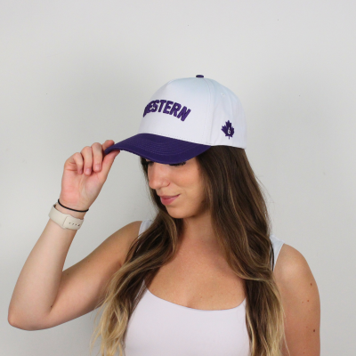 White/Purple Structured 5 Panel Snap Back Cap Western
